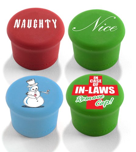 - Each wine sealer features a different design; includes Naughty, Nice, Snowman and In Case of Inlaws