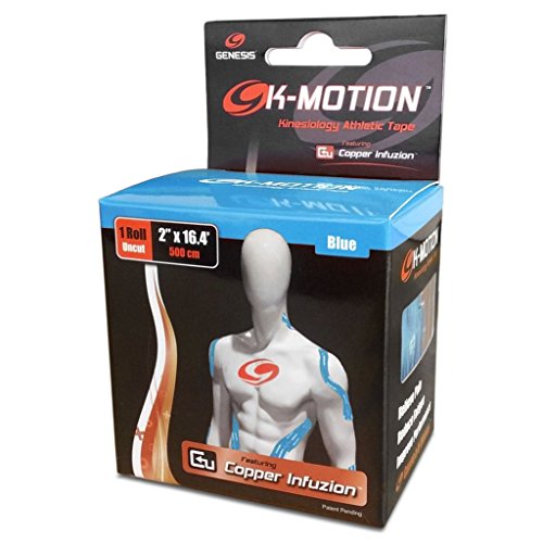 Studio : Genesis Bowling Publisher : Genesis Bowling Binding : Misc. Product Description Kinesiology Tape with Copper Infuzion K-Motion with Copper Infuzion is an innovative Kinesiology tape solution for treating and preventing common repetitive bowling injuries such as wrist, forearm, elbow, shoulder, knee pain and more. K-Motion is the first tape of its kind with copper infused into a highly elastic synthetic / cotton hybrid material, and has proven highly effective for bowling’s repetitive motion. Applied correctly, it provides pain relief, increased support and stability for injured or weakened muscles, delays fatigue and can ease joint soreness without sacrificing freedom of movement or comfort. K-Motion with Copper Infuzion is very easy to apply, is anti-microbial, and can be worn for 3-5 days at a time, providing days of relief.Relieve Pain, Reduce Fatigue, Improve Performance, Cause a K-Motion For all common injuries and more... Wrist / Fingers,Carpal Tunnel,Forearm,Elbow,Bicep/Tricep,Shoulder/Rotator Cuff,Neck Strain,Lower Back,Quad/Thigh,Knee Pain/Stability,Hamstring/Calf Strain,Ankle Sprain/Stability,Achilles Tendonitisand More... Available in Rolls of 20 Pre-Cut Strips or Uncut. This product is the uncut roll. Sizes: Pre-Cut Strips - 2 inches x 10 inches | Uncut Roll - 2 inches x 16.4 FEET 0
