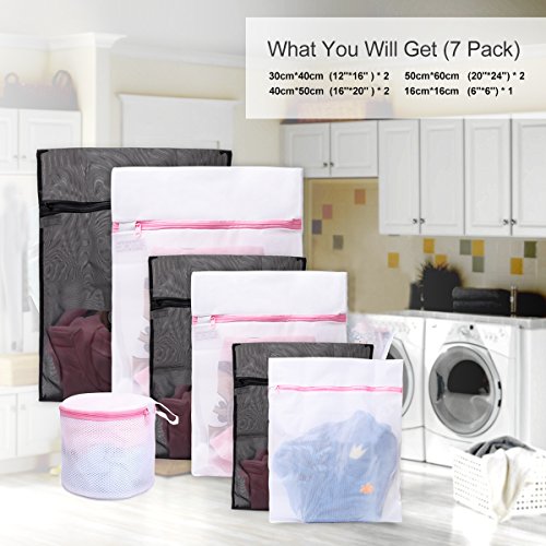 Laundry Wash Bag 7 Pack Durable Mesh Wash Laundry Bag Blouse, Hosiery, Stocking, Underwear, Bra and Lingerie Travel Laundry Bag with Zipper (7 Set)