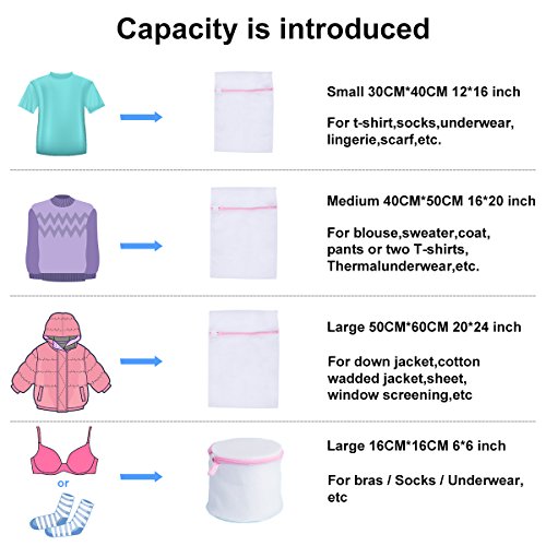 - FULL PRETECTION FOR YOUR CLOTHES: Ultra soft and fine mesh laundry bags allow water and detergent to get through with no snagging. Bag and all delicates can go from the washer to the dryer, saved your clothes from tearing and wearing in the washer and the dryer. NOTE: Remember to tuck the zipper pull inside the flap to prevent the bag from opening while in the washer or dryer.