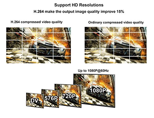 Video Compressed format-------H.264 Standards---------------HDMI 1.3, HDCP 1.2 Maximum Pixel Clock-----165MHz Maximum Data Rate-------6.75Gbps Resolution Range--------Max:1920X1080P@60Hz,less than 1080p@60hz ,all is ok Connector---------------Female HDMI Type A