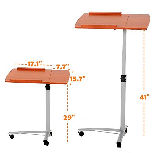 -. Feature : HEIGHT ADJUSTABLE: The height adjusts within 29-41 inch to meet different requirements / ANGLE ADJUSTABLE: Tilts at different angles, comfortable to use beside sofa/bed / T-BASE WITH SWIEL CASTERS: T-base with swivel casters for stability and brakes to stop the moving / STRONG MATERIAL: Panels made by thick and strong particle boards / HIGH PRACTICALITY: Perfect for hospital, study, bedroom, school, conference room, office etc