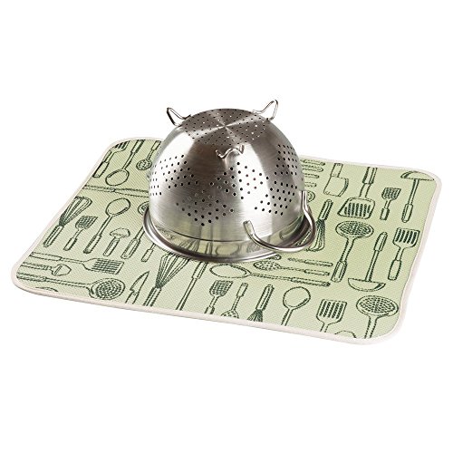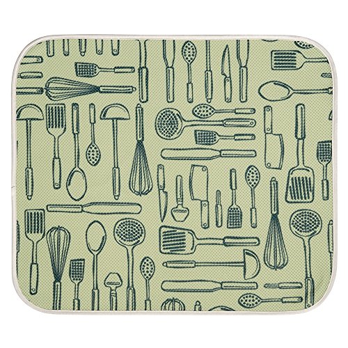 InterDesign iDry Microfiber Dish Drying Mat, 18-Inch by 16-Inch, Sage/Ivory