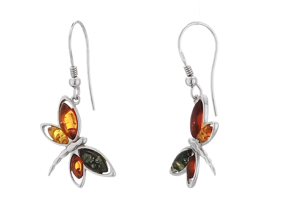 Sterling Silver Multi-Color Amber Butterfly Drop Earrings