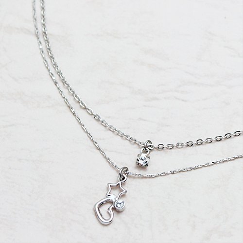 -. Title : [Jewelry Shop M]お肌に優しいニッケルフリー★高級極細キラキラチェーン オープンハート&スター 2連ブレスレット (v0028)