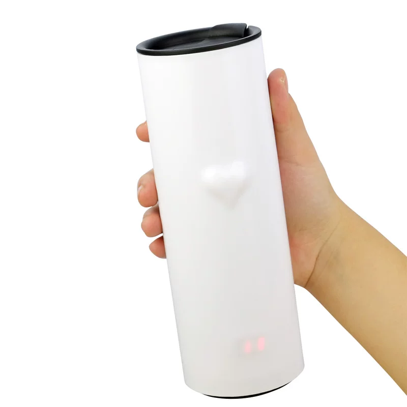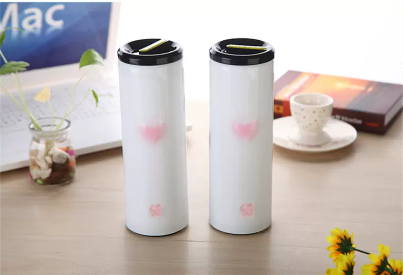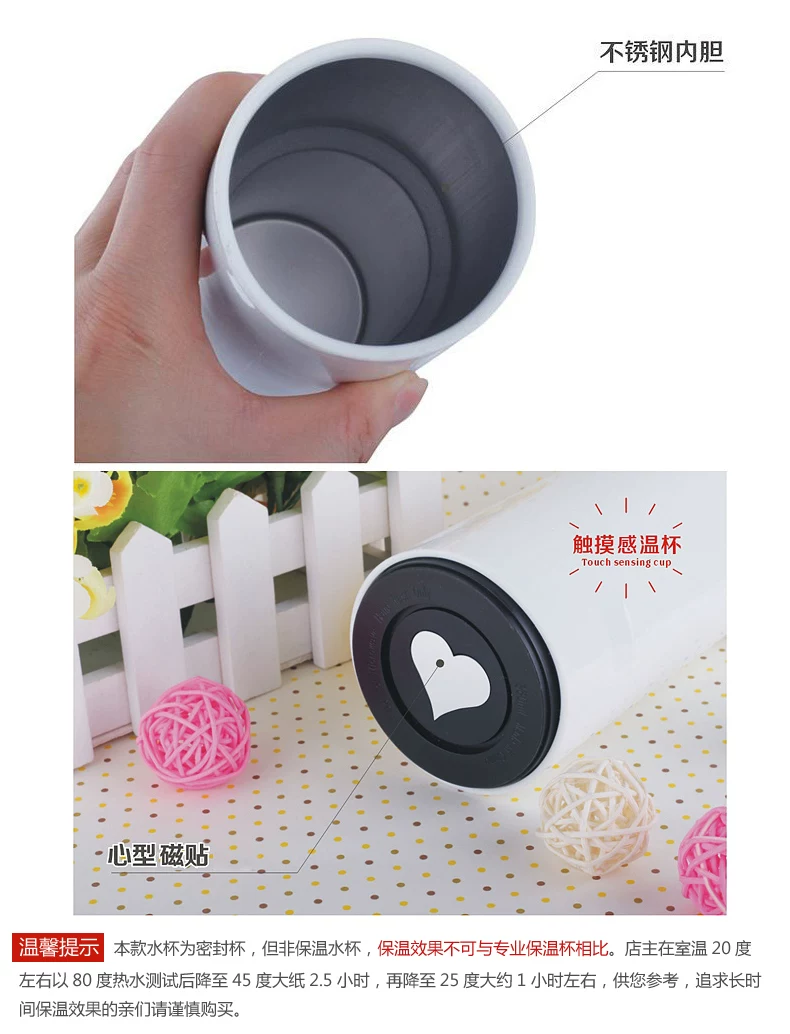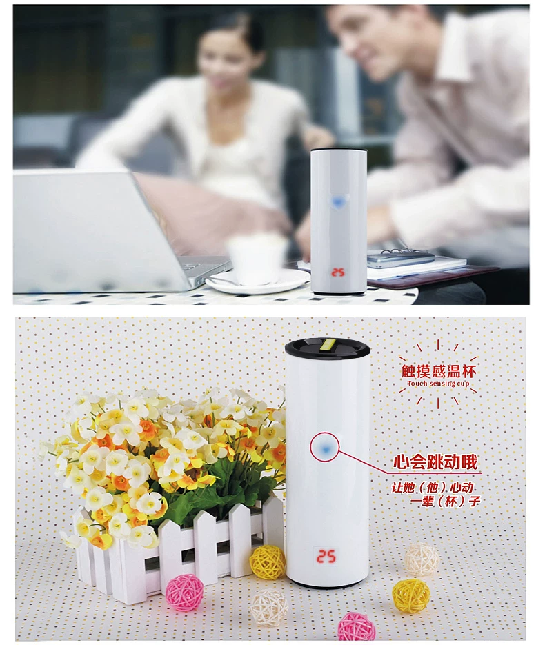 The cup design is simple, there is a very romantic name: Heart Tea. In addition to water, coffee, tea roses ... It also has a specific function! When you pick up the cup, the cup body protruding slightly heart-shaped flashes charming color! With a different cup of water temperature, heart-shaped total will be issued in three different colors: red represents passion boiling, orange is tepid, blue is a low-key look cool! Blue indicates water temperature is 0 to 35 degrees; orange, indicating that the water temperature is 35 to 75 degrees; red indicates a temperature above 75 to 90 degrees, to remind you to drink slowly, otherwise it will burn the mouth! Usually on the table, not heart-shaped light, only when the hand is in contact with the cup until the water temperature according to the cup shows the corresponding color.