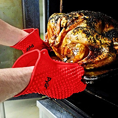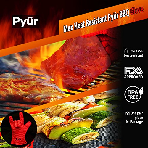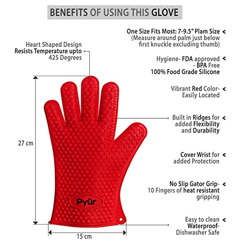 - MAXIMUM PROTECTION FROM HEAT: The Pyür’s cooking gloves heat resistant are superbly designed for the temperatures up to 425 degrees Fahrenheit. You are fully protected for cooking, grilling, potholders and so much more activities, so you are safe for the movement of hot items.