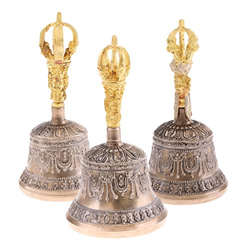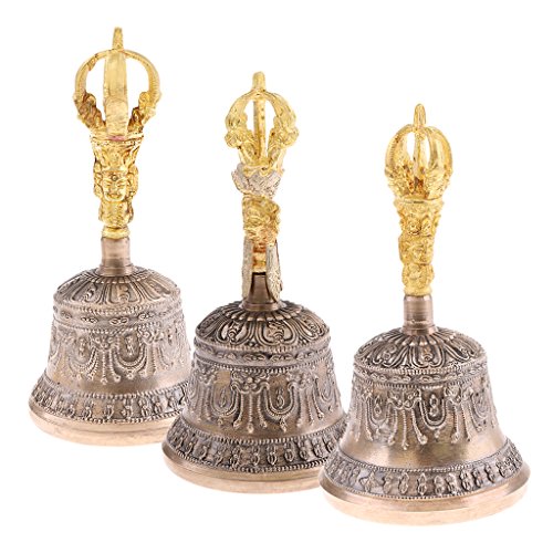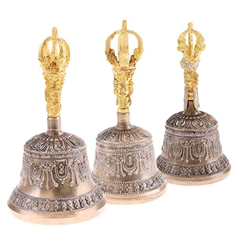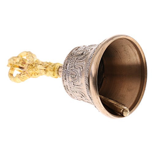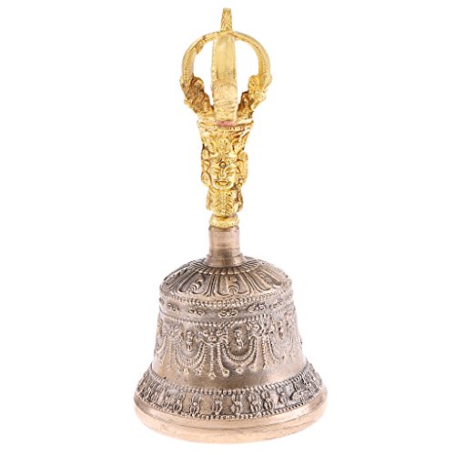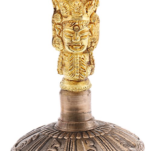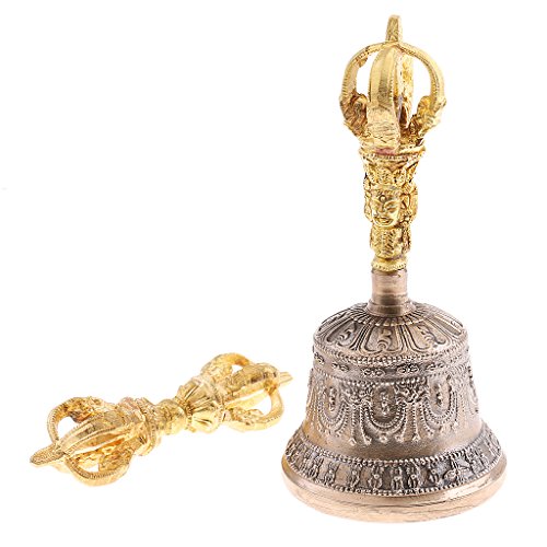 Description: - Gilding Tibetan Buddhist Vajra Dorje Pestle Bell Set - Essential Buddhism instrument, representing the insights of wisdom - Exquisite handcrafted bell - Brand new and high quality - Material: Copper