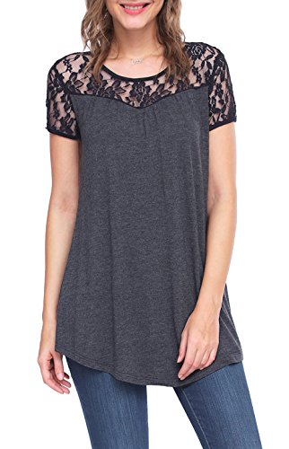 -. Title : Zattcas Womens Lace Tunic Tops Short Sleeve Pleated Loose Casual Tunic Shirts