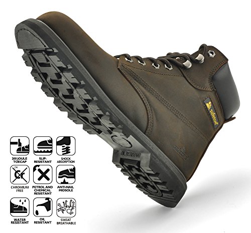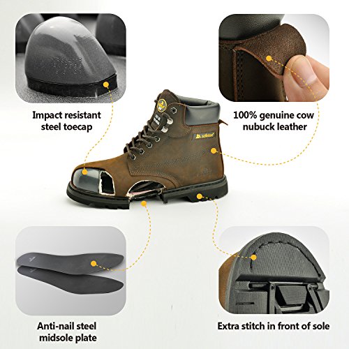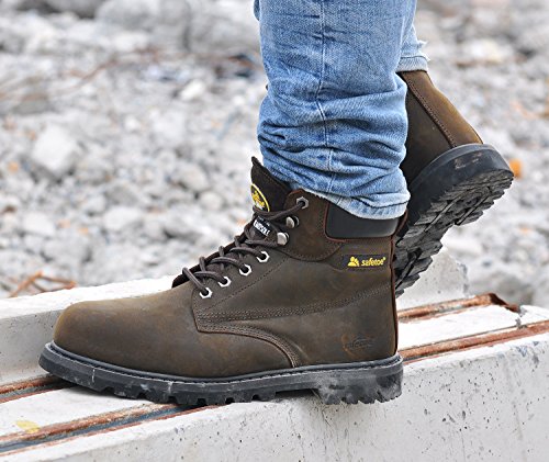 -. Title : SAFETOE Mens Safety Boots Steel Toe Leather Water-Resistant Work Boot Goodyear Welted Rubber Sole