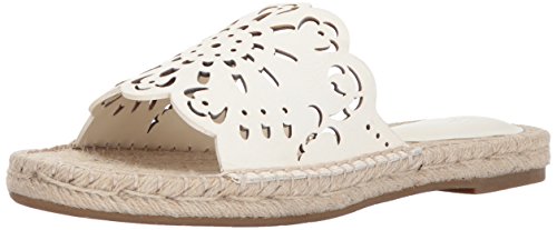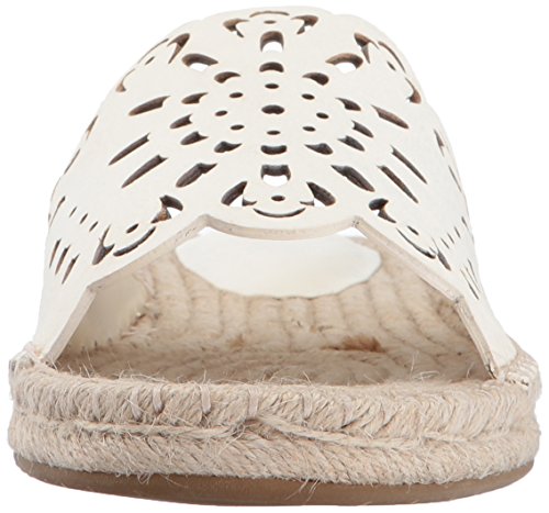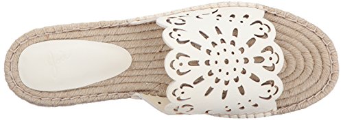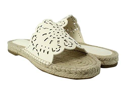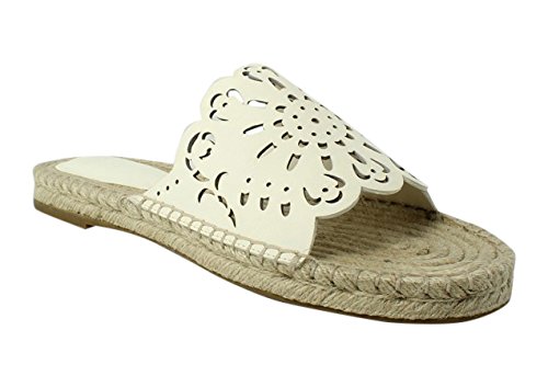 Product DescriptionLeather, espadrille slide sandal with laser-cut detail and scalloped edges0