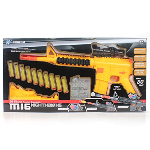 -. Title : Foam Dart Gun & Water Ball Blaster Spring Powered Toy - Night Hawk M16+ Water Polymer Ball Shooting Gun, 10 Suction Darts, Clear Eco-Friendly Polymer Pellets