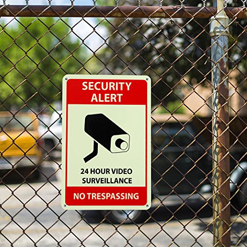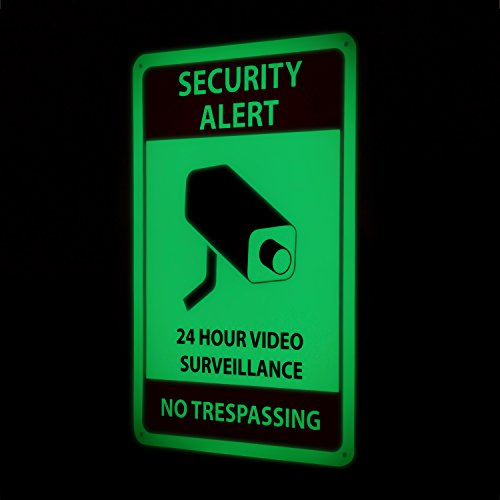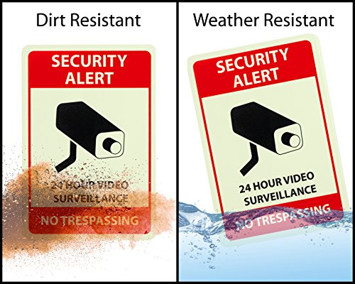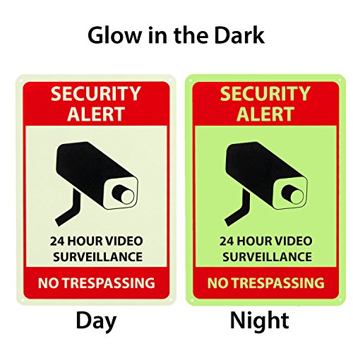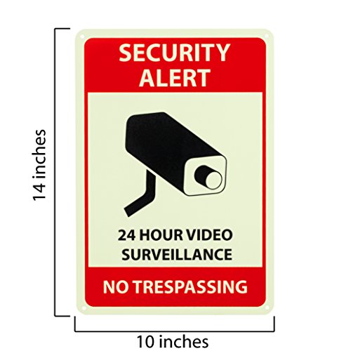 ✔ BUILT TO LAST & GLOW – Our surveillance signs are made of rust-free aluminum with a lifespan of many years. The bright UV printing on the sign will withstand the elements and will continue to deter potential intruders come sunshine or rain. The print features a photoluminescent surface that absorbs light and makes the sign glow in the dark over the course of many hours, so that the sign will be a clear warning to potential intruders, even at night.
