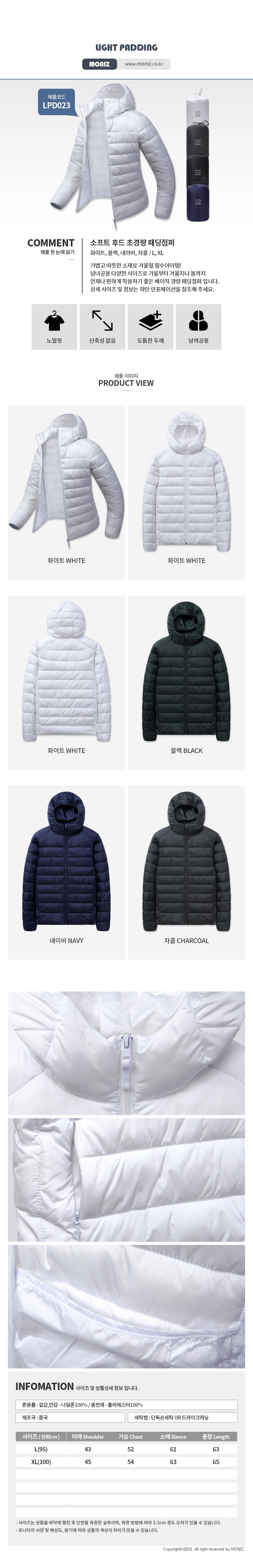 [Moniz] soft hood ultra light padding jumper LPD023