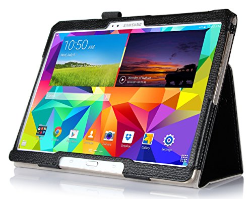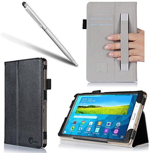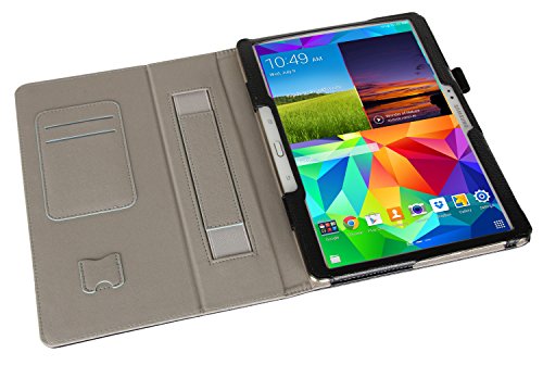 i-BLASON Samsung Galaxy Tab S 10.5 Case - Leather Book (Elastic Hand Strap, Multi-Angle, Card Holder) With Bonus Stylus 3 Year Warranty (Black) (Galaxy Tab S 10.5, Black)