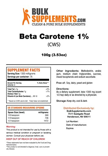 Bulksupplements Pure Beta Carotene 1% (CWS) Powder (100 grams)
