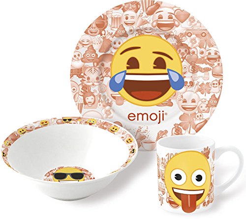 Studio : Stor Publisher : Stor Binding : Kitchen Product Description The official brand - accept no substitutes! Officially licensed Emoji 3pc Ceramic Dinnerware Set includes plate, bowl mug decorated with everyone's favorite iconic emojis. Packaged in a full color die cut window gift box. Perfect for snacktime, dinnertime or anytime! 0