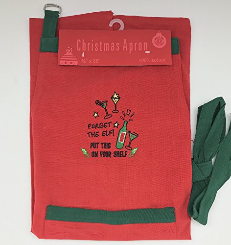 Holiday Christmas Chefs Apron: Embroidered Fun Adult Humor for Men Women ("Forget the Elf" Red)