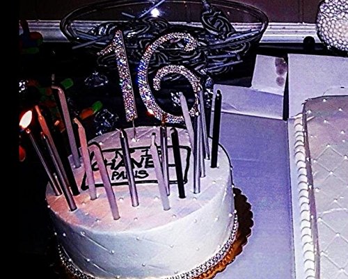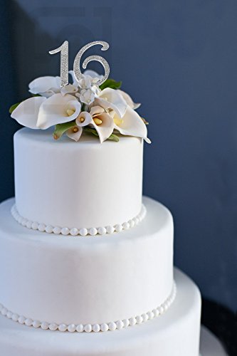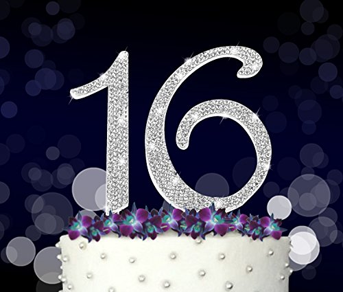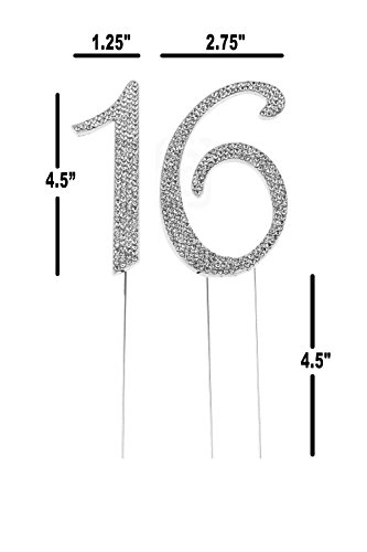 16 Cake Topper, 16th, Sweet 16 Happy Birthday, Anniversary, Crystal Rhinestones on Silver Metal, Party Decorations, Favors