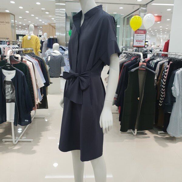 단아하면서 세련된무드의리본장식포인트 노카라 셔츠형 원피스입니다