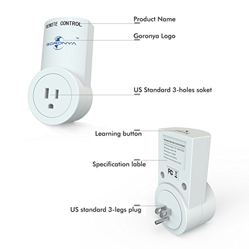 Goronya Wireless Outlet Switch with Remote,Electrical Plug Outlet Control for Household Appliance Lamp Light Etc (1 Plug / 1 Remote)