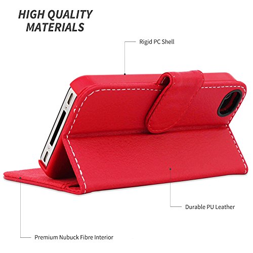 Snugg® iPhone 4 / 4s Case - Leather Wallet Case with Lifetime Guarantee (Red) for Apple iPhone 4 / 4s