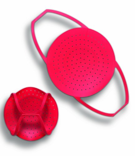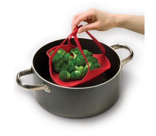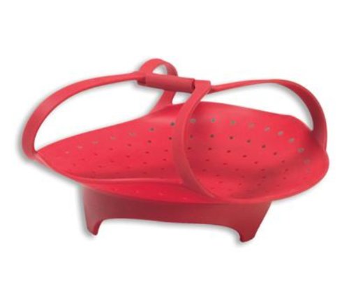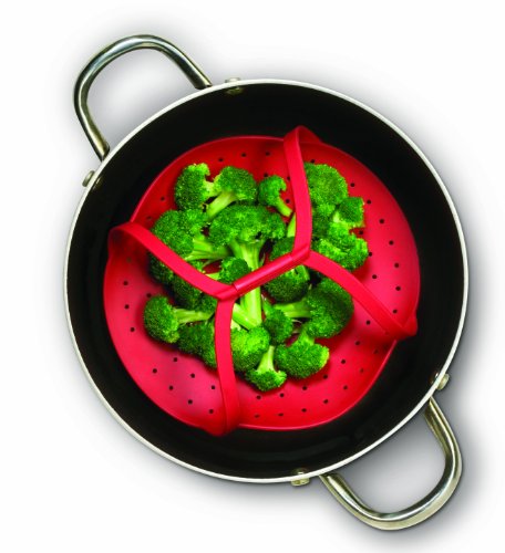 This innovative Tovolo Silicone Steamer will provide you with a steam dream. Gone are the painful experiences from the old metal steaming days as silicone technology has stepped in to help you heat your food, not your hands. This steamer features long, snap-together handles that enable you to lift food quickly from the steaming pot. The footed, elevated base keeps the flexible silicone steaming bed from close contact with the heat source. Durable, flexible, and perfect for all your steaming needs, this vibrant red Tovolo steamer is available in two sizes.Feature
