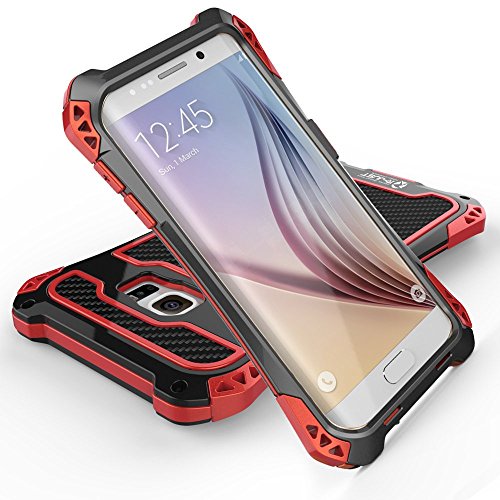 R-just Amira Powerful Life Waterproof Shockproof Dirt Proof Metal Cover Cases for Samsung Galaxy S6 Edge (Black Red Black)