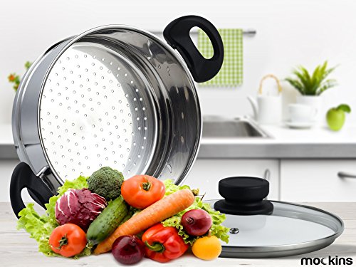 mockins 3 Piece Stainless Steel Steamer Pot Set you can professionally steam all the food you want!