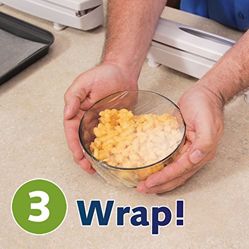 Wraptastic wraps food in a flash. Simply load plastic wrap, wax paper or foil then pull, press, wrap Cuts perfectly every time so theres no waste, and features a hidden blade that cuts safely and easily. The non-slip rubber feet holds Wraptastic in place. Wraptastic is spring loaded so it is easy to start and never bunches, sticks or rips apart. Fits all your favorite brands and standard with rolls up to 200 feet. Dishwasher safe and easy to store.