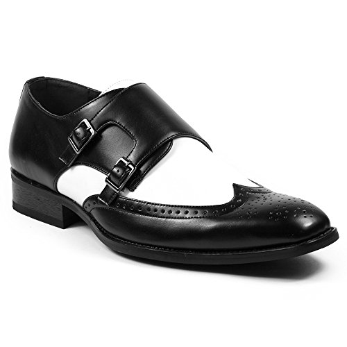 UV Signature PA003 Men's Perforated Wing Tip Double Monk Strap Dress Shoes