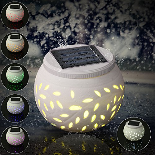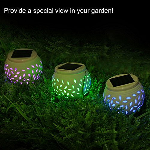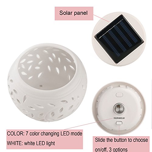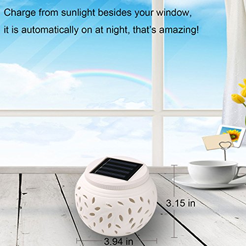 - CERAMIC SOLAR TABLE LIGHT WITH GORGEOUS LIGHTING EFFECT: The solar jar made from ceramic material and adopt hollow out technology, the light goes through the leaf-shaped holes and forming a gorgeous effect of petals.