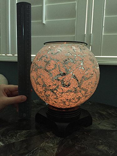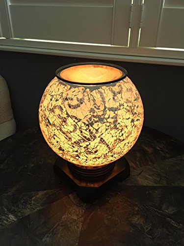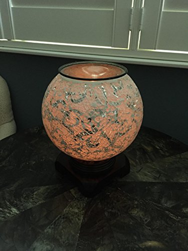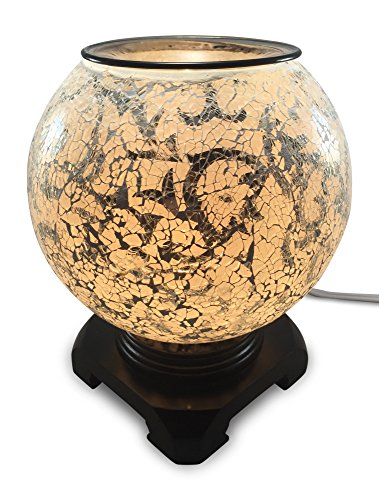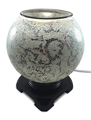 Silver Mirror Swirl, Extra-Large Globe, Glass Mosaic Electric Dimmer-controlled Fragrance Lamp with Free Replacement Halogen Bulb