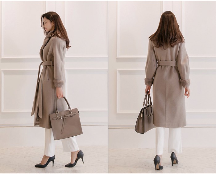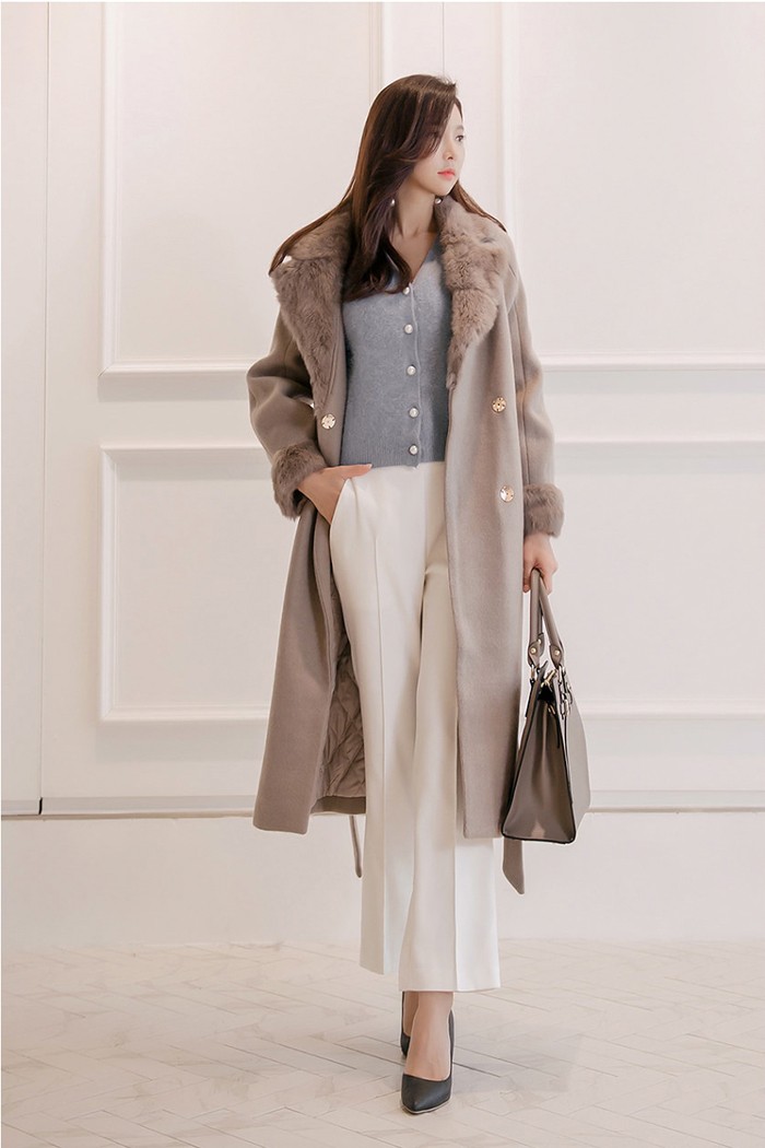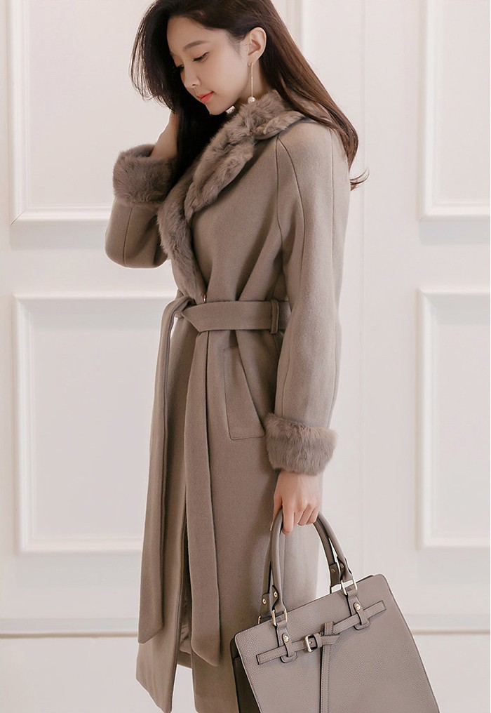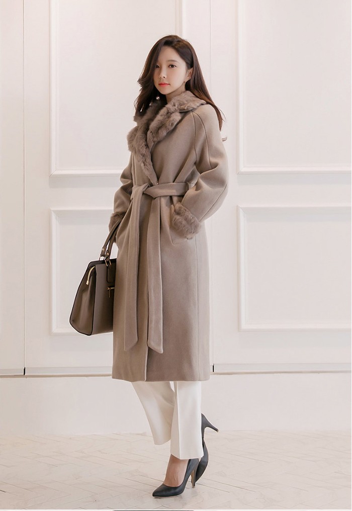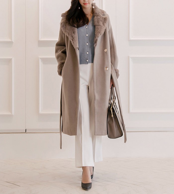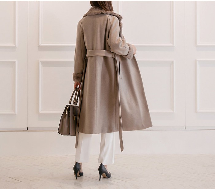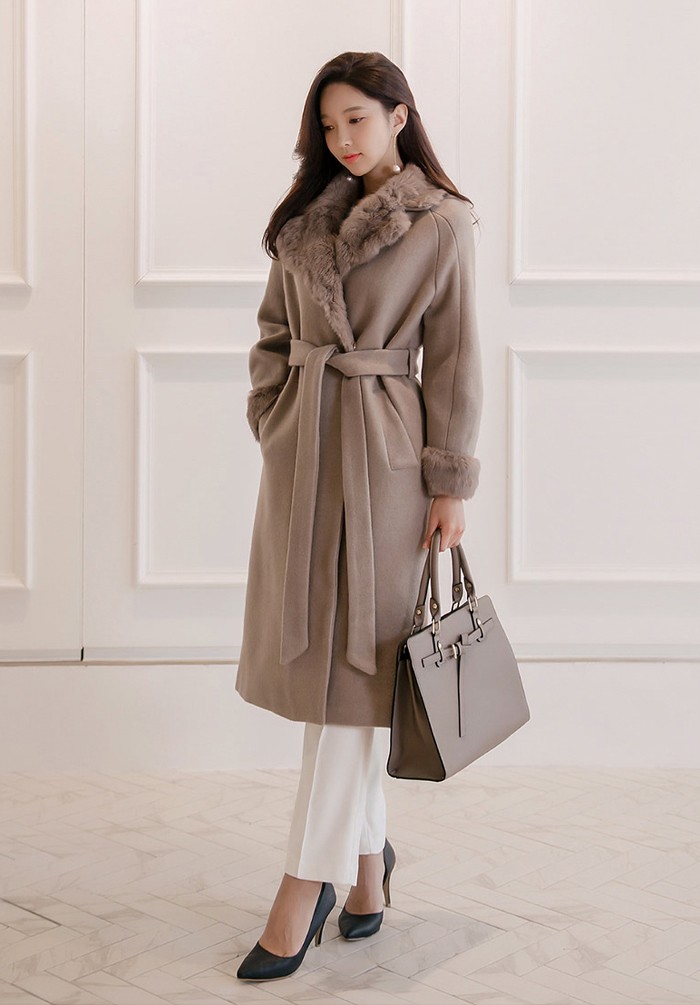 商品名:コート ロング丈 ロングコート ファー配色 きれいめ 通勤