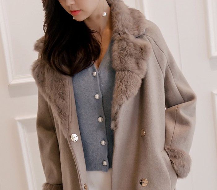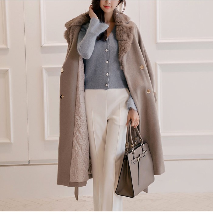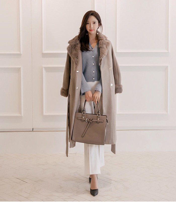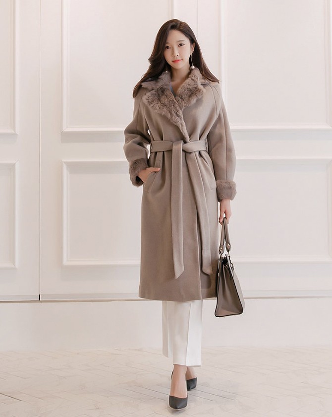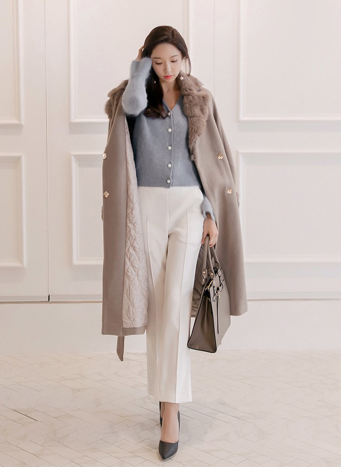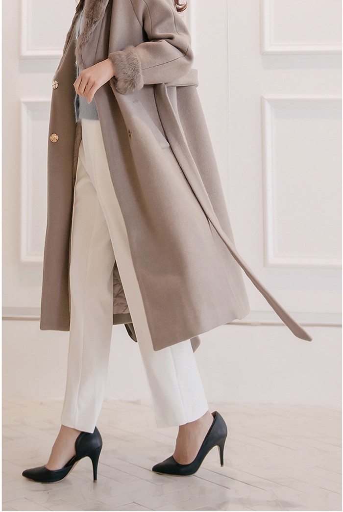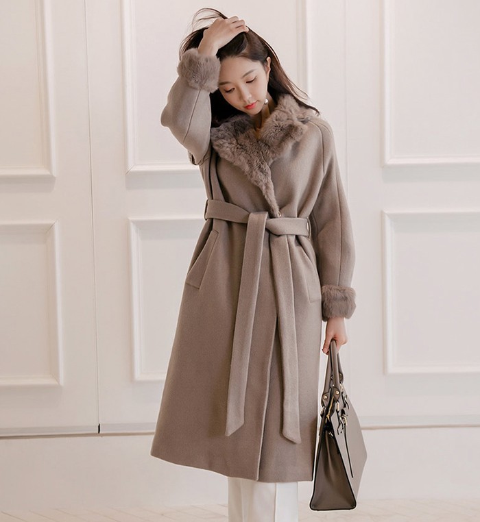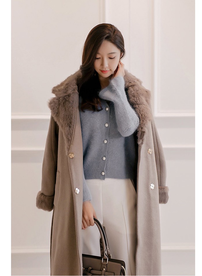 商品名:コート ロング丈 ロングコート ファー配色 きれいめ 通勤