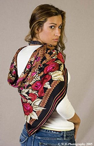 (silksalon)/Accessories/Scarves/DIRECT FROM USA/Large 100% Luxurious Charmeuse Silk Scarf Shawl Wrap By Silk Salon Pink Black A1118