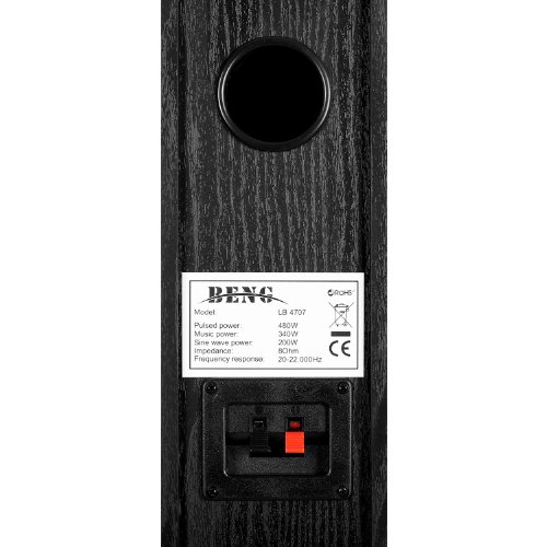 -. Feature : 4-Wege-Technik | Bassreflex-Technologie mit seitlich eingelassenem 16,5cm (6,5") Sidefiring-Subwoofer | schwarzes Holz-Gehäuse für ein sattes Klangerlebnis / Impulsbelastbarkeit: 2x 480 W - Musikbelastbarkeit: 2x 340 W - Sinusbelastbarkeit: 2x 200 W | abnehmbare Lautsprechergitter / Anschlüsse: 1 x Satz Stereo-Klemmen | Frequenzgang: 20 bis 22 kHz | Impedanz: 8 Ohm / Beng ´s mächtiges Boxenpaar LB 4707 erfreut den Musik-Liebhaber und erschreckt die Konkurrenz mit einem sagenhaften Preis. | Die hochgeschossenen Boxen liefern dank solidem Holz-Gehäuse und 4-Wege-Technologie einen erstklassigen, lebendigen Sound - bei Musik und Film gleichermaßen. / Neben den ausgewogenen Klangeigenschaften bestechen die kraftstrotzenden Boxen-Brüder mit einer edel-schwarzen Hülle und einem extrem schlanken Design, mit dem sich die Beng LB 4707 harmonisch in jeden Wohnstil einordnen. | Kurzum: Exzellente Boxen mit einem herausragenden Preis-Leistungs-Verhältnis.