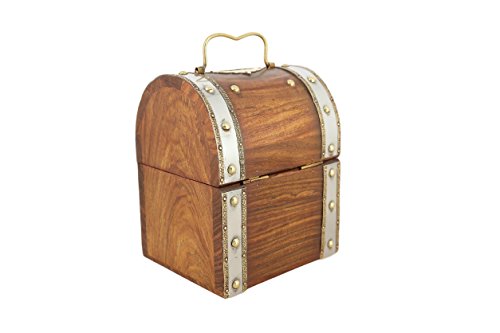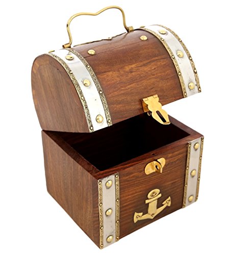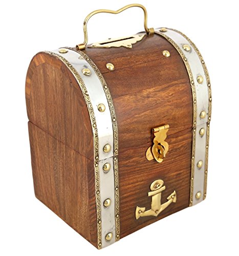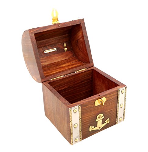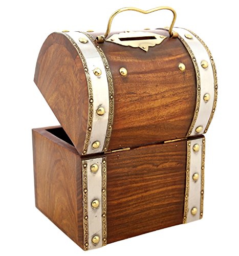 ShalinIndia Handmade Treasure Chest Wood & Brass Bank - 5.5 x 4.5 x 3.5 Inch - Great Gift Idea - Artisan Crafted in India
