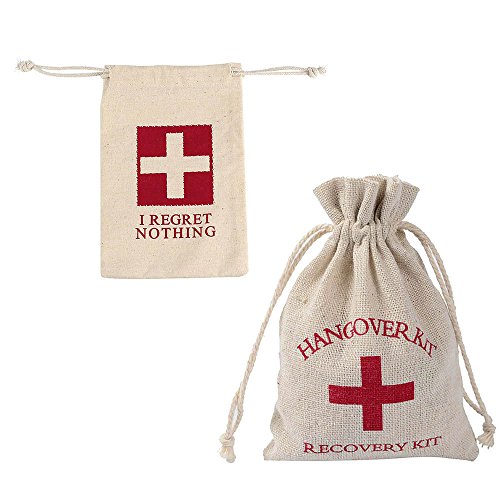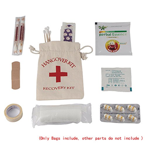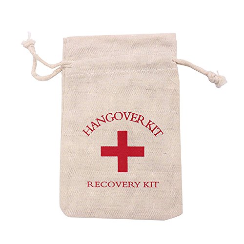Studio : HuntGold Publisher : HuntGold Binding : Health and Beauty Product Description Description: Multipurpose function: this natural muslin hangover kit bags are ideal for all kinds of party during this special seasoning, christmas party, new years eve, annual party etc.? Give your friends and guests a leg up in hangover defense for the next morning by adding your favorite remedies like advil, ear plugs, band aids, candy or breath mints. Unique design: the vintage look red only printed on the front, has more natural appearance. Specification: Pattern: Natural White Muslin drawstring bag, stamped with a red cross and the red font of "HANGOVER KIT" and "REGRET" Material: Cotton blend Muslin Size: approx.10.5*15cm Capacity : a packet of advil, two tablets of antacids, a mint, band-aids, and a tea bag.and still had room for more. Care: Durable and reusable, hand washing Package Included: 1*Bag Please kindly Note: Items will be repackaged to save your shipping charge to be enviromentally friendly. We guaranty the item wil be protected well in buble bags, No retail box! 0