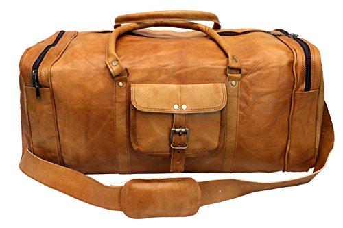 -. Feature : 100 % genuine leather with durable canvas lining. No bad/foul smell like other goat bags.Price Guarantee / Big main compartments for clothing /travel and sports gear etc / Two Side pockets for accessories etc. Front pocket for cash /mobile / Adjustable shoulder Strap / Multi utility bag can be used as a travel bag, gym duffel bag, sports duffel bag, overnight bag, weekend cabin duffel bag, carry on duffel etc