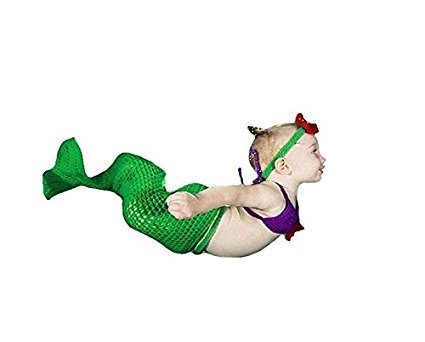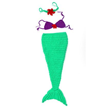 Eyourhappy Handmade Knitted Crochet Mermaid Costume Newborn Baby Photograph Props Set Headband Tail Bra