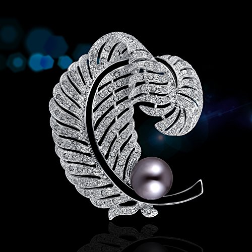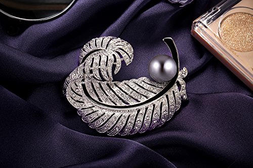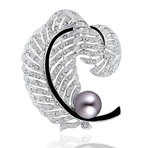 -. Title : PLATO H Love Pearl & Feather Brooch with Swarovski Crystal Women Fashion Jewelry Greatest Gift for Her