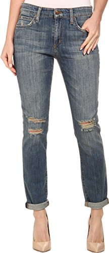 Rolled cuffs finish the cropped length. Navi is a medium blue wash with frayed grinding at the edges and ripped knees. Sanding completes the worn-in look and draws out the vertical slub character. 9.5 oz stretch denim. Contrast topstitching. Antiqued copper-tone hardware. Leather tab accents the right rear pocket. Five-pocket design with signature arc stitch at back. Belt loop waistband. Zipper fly and button closure. 98% cotton, 2% elastane. Machine wash and line dry. Imported.