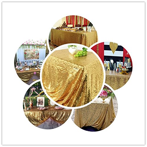 - Sizes:60x120-in Gold Handmade Sequin Tablecloths