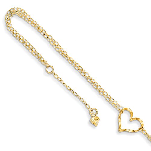 -. Title : 14K Gold Adjustable Heart With 1" Extender Anklet Bracelet, 9"