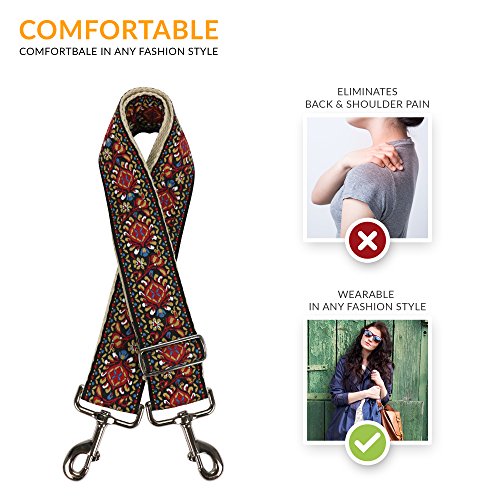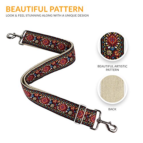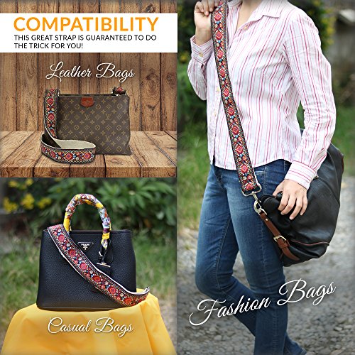 Red Vintage Handbag Purse Strap - Jacquard Woven Guitar Strap Styled Shoulder Bag Strap - Adjustable Bag Strap For Tote Bag And Messenger Bags – Great Gift for women and ladies