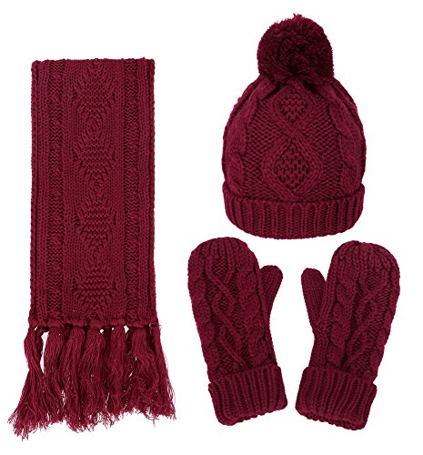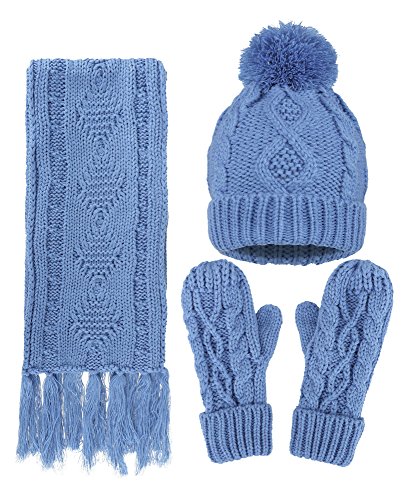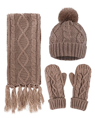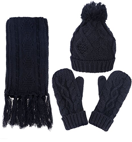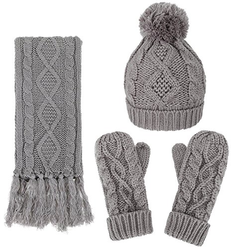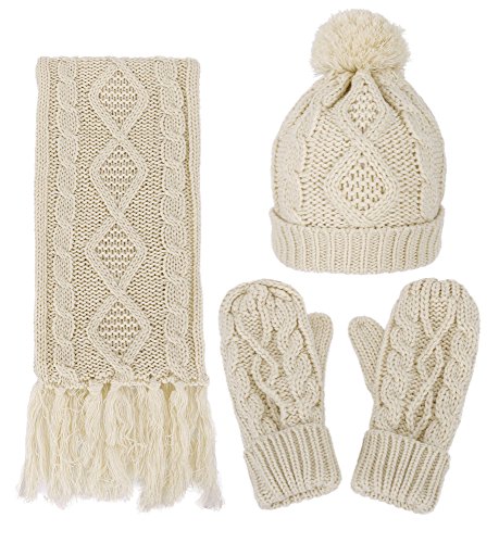 | ANDORRA - 3 in 1 - Soft Warm Thick Cable Knitted Hat Scarf Gloves Winter Set |