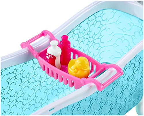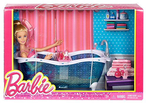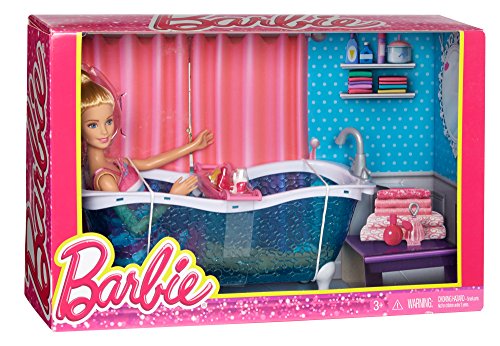 Barbie doll's busy life means she appreciates her time at home that much more -- so she loves to furnish it with fabulous pieces like these! each set includes a large piece of furniture and Barbie doll. Choose from a doll with bathtub for a glamorous bathroom or one with a daybed to go from living room to bedroom play. The furniture features Barbie signature style with today's most popular colors and trendiest looks. Accessories -- like a tray that fits on the tub and holds bath products or a colorful soft blanket and molded pillow for the daybed -- add realism and fun. Girls can play out stories from daytime to nighttime and everywhere in between with these sets, because with Barbie, anything is possible! includes Barbie doll, furniture piece and themed accessories. Each sold separately. Dolls cannot stand alone.Feature