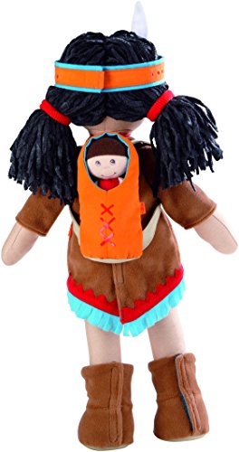 Sihu is a beautiful Native American doll dressed in a traditional dress, patterned necklace and headband, and adorable boots!