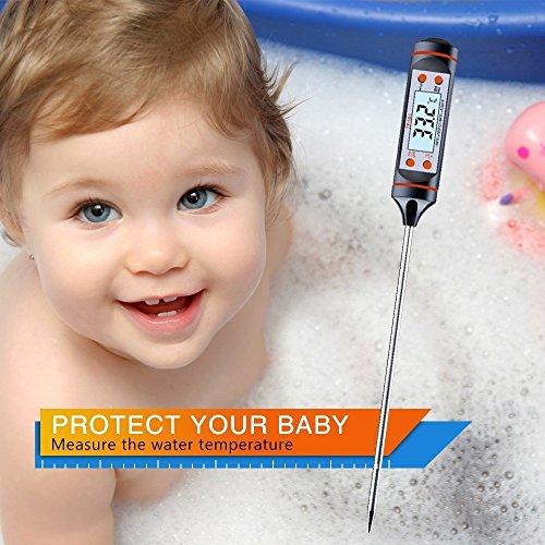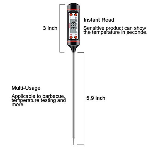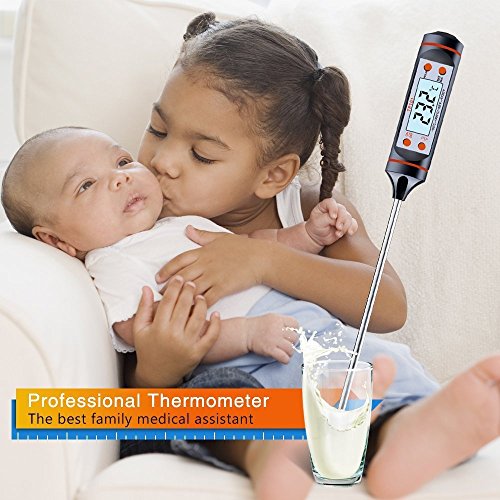 Product Description Look no further, this easy to use thermometer can even check the temperature of your home made wine, beer or elder flower champagne.This is a high quality, reliable, and easy to master thermometer! DESCRIPTION: The thermometer was designed with food in mind, however, we have also tested it in other environments including heating and ventilation. In the kitchen you can use it to test both meats, jams and baking. As well as making sure you have the perfect oil temperature for deep fat fryers. Check your barbecued foods are cooked right through. Make sure baby milk is not too hot, even check your bath temperature is just right. In fact this handy little probe is ideal for so many jobs where temperature is important. It is also very easy to operate. All you have to do is place the metal probe in the object you wish to measure and an accurate reading is available in seconds. If you wish to save the reading you are able to by using the 'hold' button which will store the reading for you to view at a later date. Probe comes packaged in handy clear plastic tube with "hanging cord" for easy storage. Features: Measures ranges :-58F 572F(- 50C to 300C) Temperature accuracy: ±1.8°F(±1°C) Memorizes the last measuring data Power: 1 X 1.5V LR44 (Also named AG13) button battery Auto power off in 15 minutes' idle time Package include: 1 x Digital thermometer 1 x English manual 1 x LR44( also named AG13) button installed 1 x Blue strap 1 x Plastic tube WHY BUY FROM US? Support small businesses! We are a family owned small business dedicated to deliver high quality products to each of our customers along with a hassle-free buying experience and top of the line customer service from beginning to end. WHAT TO EXPECT? Perhaps our attention to detail is what separates us from the rest! You can expect a high quality product specially designed to fit your needs 0